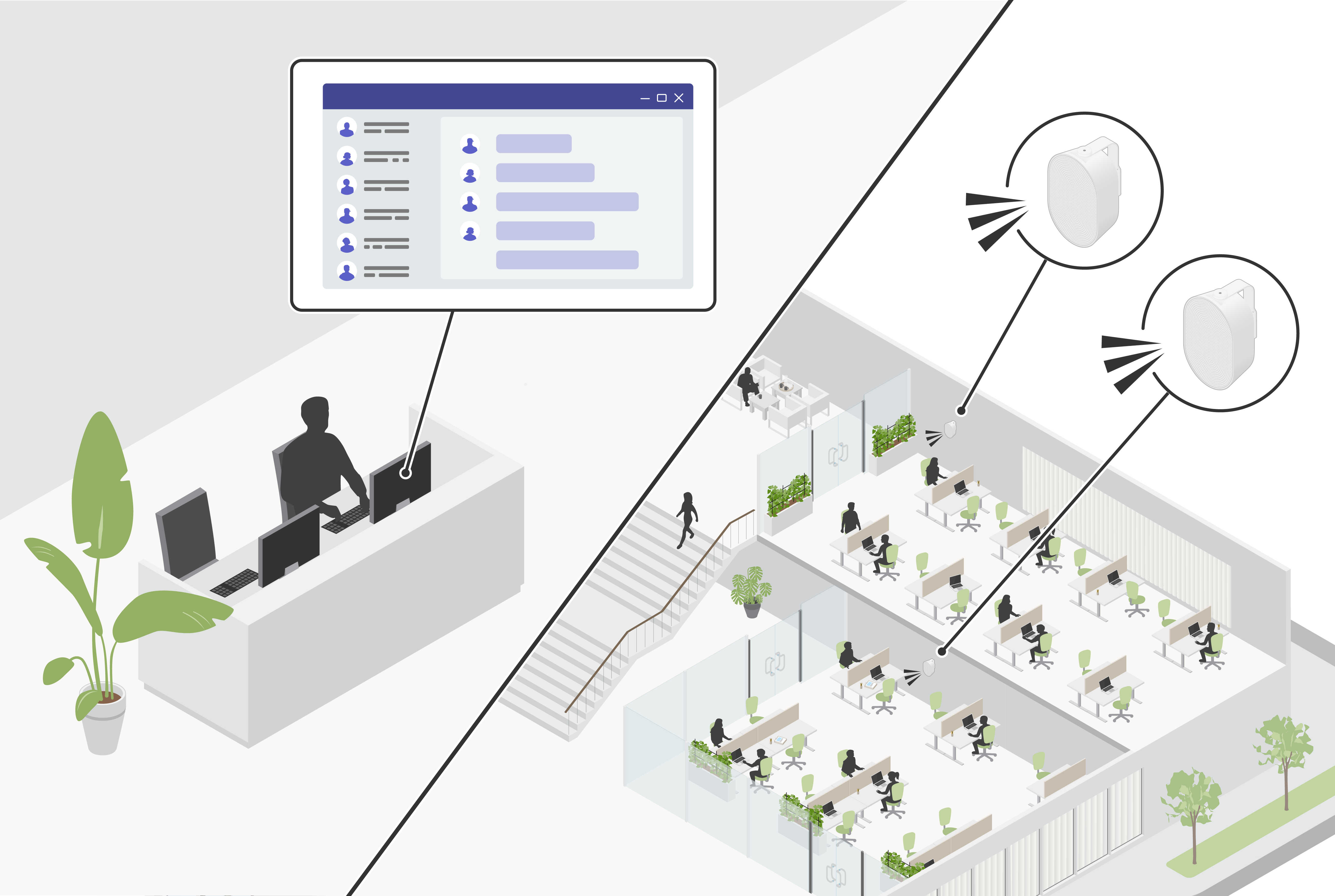 Grâce à ce système, vous pouvez utiliser Microsoft Teams comme console pour diffuser des annonces via les haut-parleurs et les interphones de votre réseau.